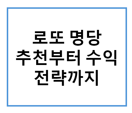 로또 명당 추천부터 수익 전략까지
