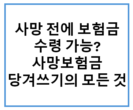 태그: 사망보험금, 사망 전에 보험금 수령, 보험금 당겨쓰기, 조기 지급 제도, 말기질환 보험, 보험약관 해석, 보험금 활용사례, 보험 절차, 가족 보험 플랜, 실전 보험 가이드