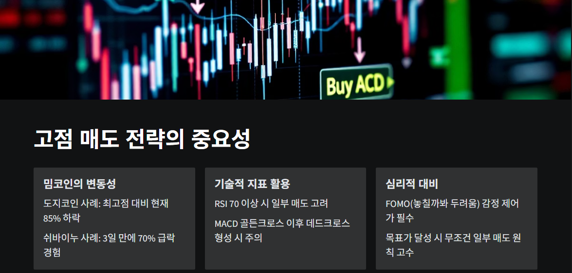 밈코인의 급등은 대부분 일시적이며, 커뮤니티 열기가 사그라들면 급락으로 이어지기 쉽다. 특히 락업 해제 전후로 급등한 코인의 경우, 고점에서 거래량이 정점을 찍고 이후 하락 전환되는 경우가 많다. 따라서, 이번 급등이 현실화된다면 반드시 전략적인 분할 매도 또는 자동 매도 예약 설정이 필요하다.
