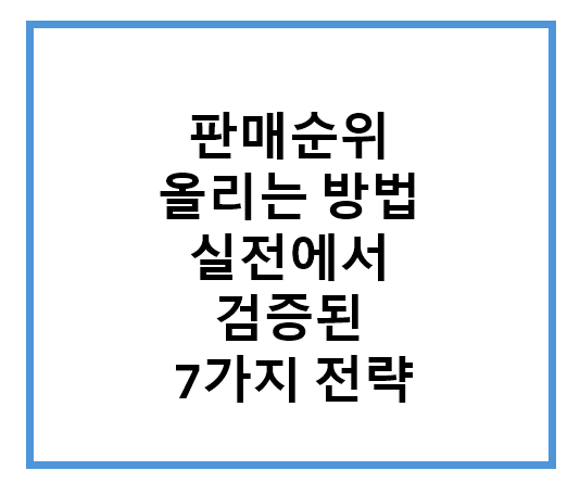 안녕하세요. 저도 온라인 스토어를 처음 운영할 때 판매순위를 높이기 위해 정말 많은 시행착오를 겪었어요. 이번 글에서는 제가 직접 써보고 효과를 본 7가지 전략을 단계별로 알려드립니다. 끝까지 읽으시면 매출과 순위를 동시에 높이는 방법을 알게 되실 거예요.