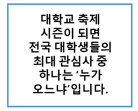 대학교 축제 시즌이 되면 전국 대학생들의 최대 관심사 중 하나는 ‘누가 오느냐’입니다.