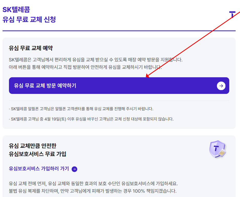 2. SK 유심보호 서비스 무료 교체 신청방법